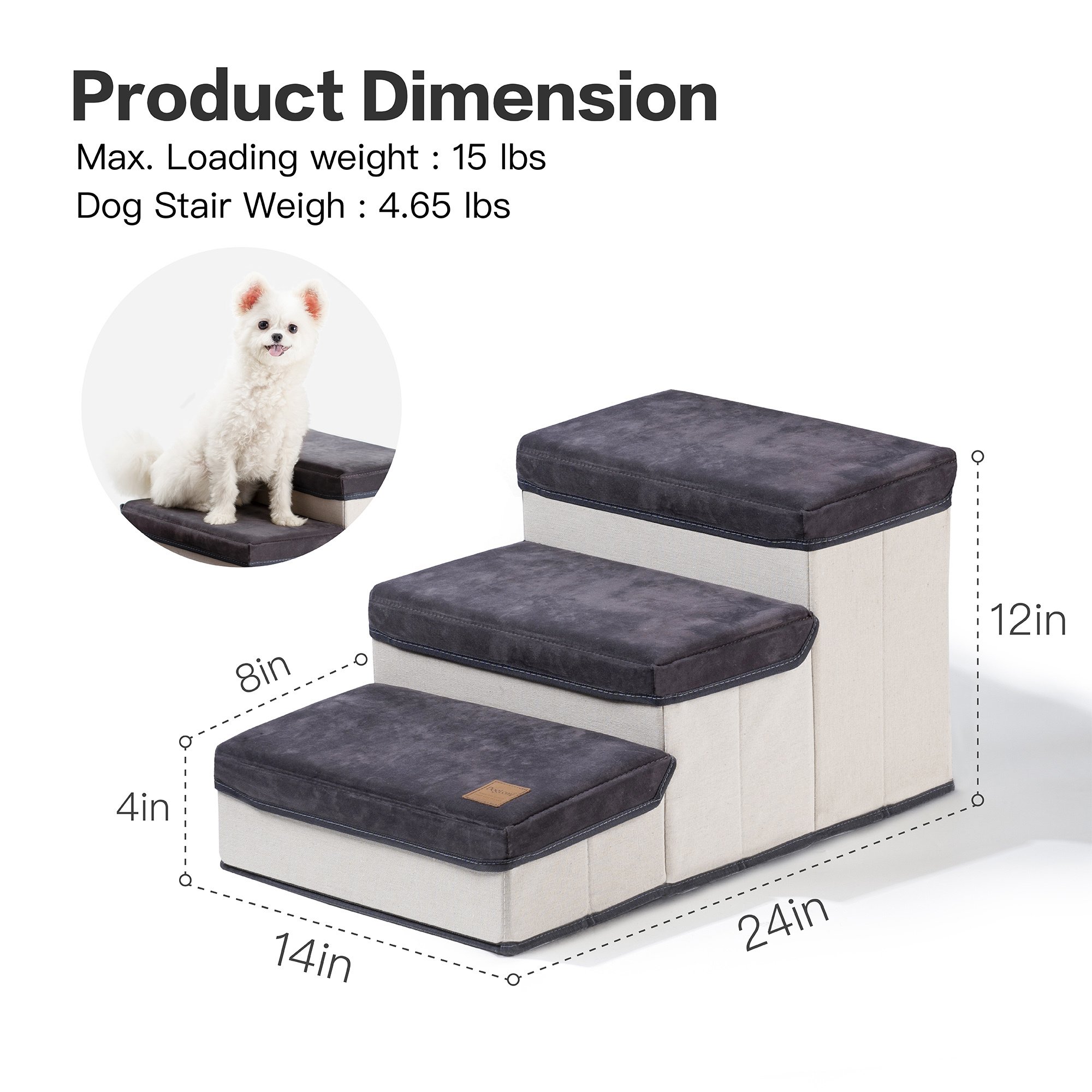 Home > 3 Tiers Foldable Dog Stairs; Pet Steps for Small to Medium Dogs; Dog Ladder Storage Stepper for Bed Sofa Couch
