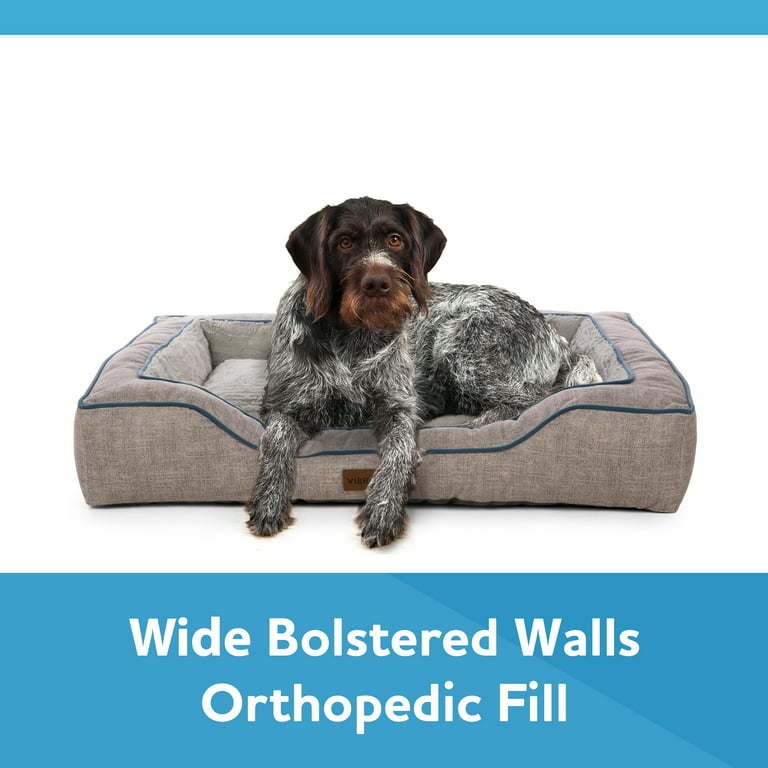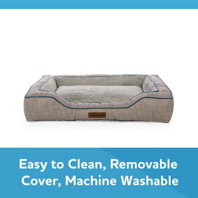 Bolstered Bliss Mattress Edition™ is a large deluxe dog bed containing high performance human-grade mattress materials, wide, bolstered walls and large sleep surface ideal for multiple sleep positions and full body support. With a lowered front entrance, allowing for easy entry and exit, it is an ideal pet bed for dogs of all ages and multiple pet families. A comfortable pet bed for restful sleep or a lounge area in the home, crate, or car. Comes in a home décor friendly fabric. Sizing: 36 inches x 26 inches x 6 inches. Ideal for large pets, up to 70 lbs. Mattress Edition™ pet beds are part of Walmart's Closed Loop Program and contain recycled human-grade mattress materials and post-consumer recycled fibers, keeping thousands of mattresses from landfills annually and providing premium full body support and comfort for pets of all ages and sizes. Vibrant Life™ Bolstered Bliss Mattress Edition™ pet bed keeps the equivalent of two hundred 16.9 oz plastic water bottles from our environment, doing our part one pet bed at a time.