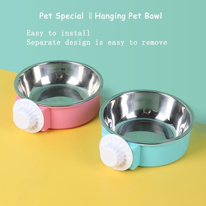 Home > Pet Stainless Steel Bowl Hanging Cage Type Fixed Cute Dog Basin Cat Supplies Puppy Food Drinking Water Feeder Pets Accessories