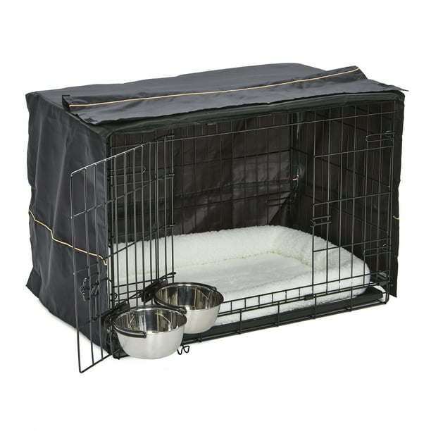 wants to help you minimize the stress of having a new puppy while maximizing your enjoyment with your new best friend.. To do that, we want to offer you our new iCrate Double Door Crate Kits that include everything a new pet parent needs to get started. We designed this kit to ensure your puppy has a smooth transition into its new forever home. With proper use of the dog crate, your puppy will learn how to be housetrained quickly and with fewer accidents. The pet bed will create a cozy atmosphere for your pet & the privacy crate cover reduces anxious behavior & creates a more den-like home your dog instinctually desires. This specific kit features a 30-inch long double door dog crate that is ideal for medium dog breeds. This dog crate cover and the pet bed are also machine washable & dryer safe.