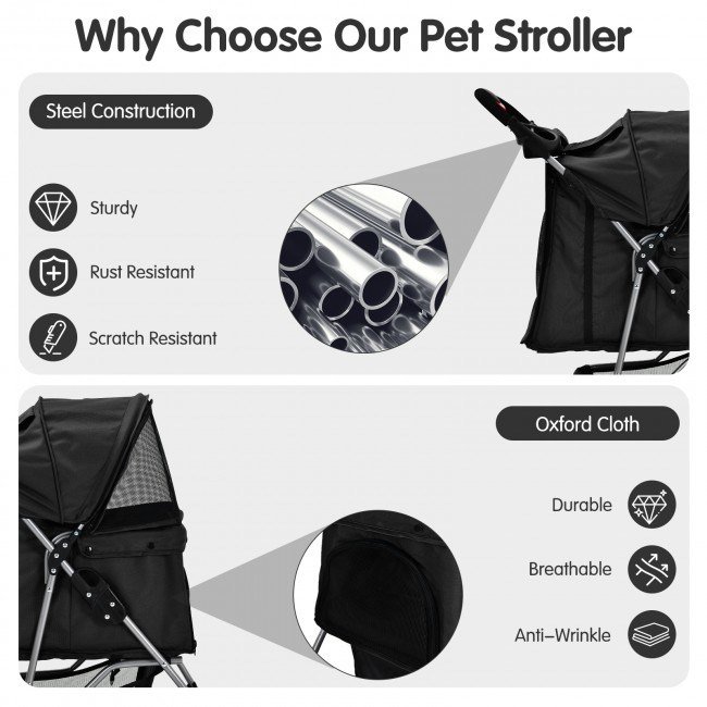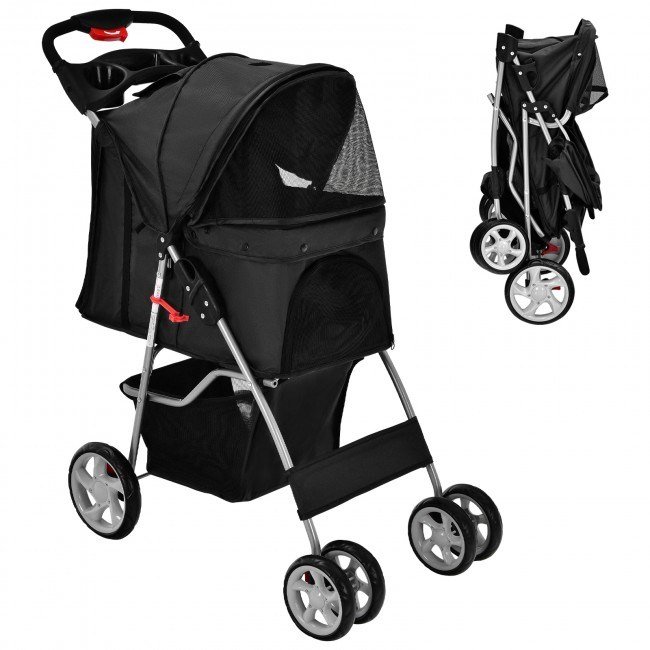 Home > Foldable 4-Wheel Pet Stroller with Storage Basket