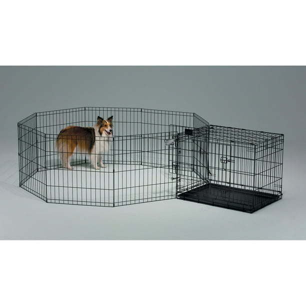 LARGE DOUBLE DOOR FOLDING DOG CRATE: Ideal for dogs adult weight of 71 - 90 pounds. Convenient divider panel allows crate to expand as your dog grows
