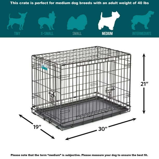 LARGE DOUBLE DOOR FOLDING DOG CRATE: Ideal for dogs adult weight of 71 - 90 pounds. Convenient divider panel allows crate to expand as your dog grows